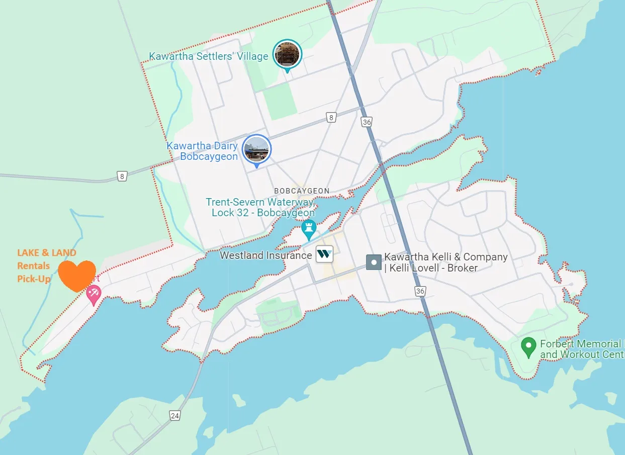 Lake & Land Rentals has a pick-up location in Bobcaygeon on Front St West near Bobcaygeon Resorts. Customer pick-up is preferred as we cannot guarantee drop-off time for deliveries.. also its free! So feel free to stop on by on the way to your cottage, or arrange for a convenient time to pick up your rental.